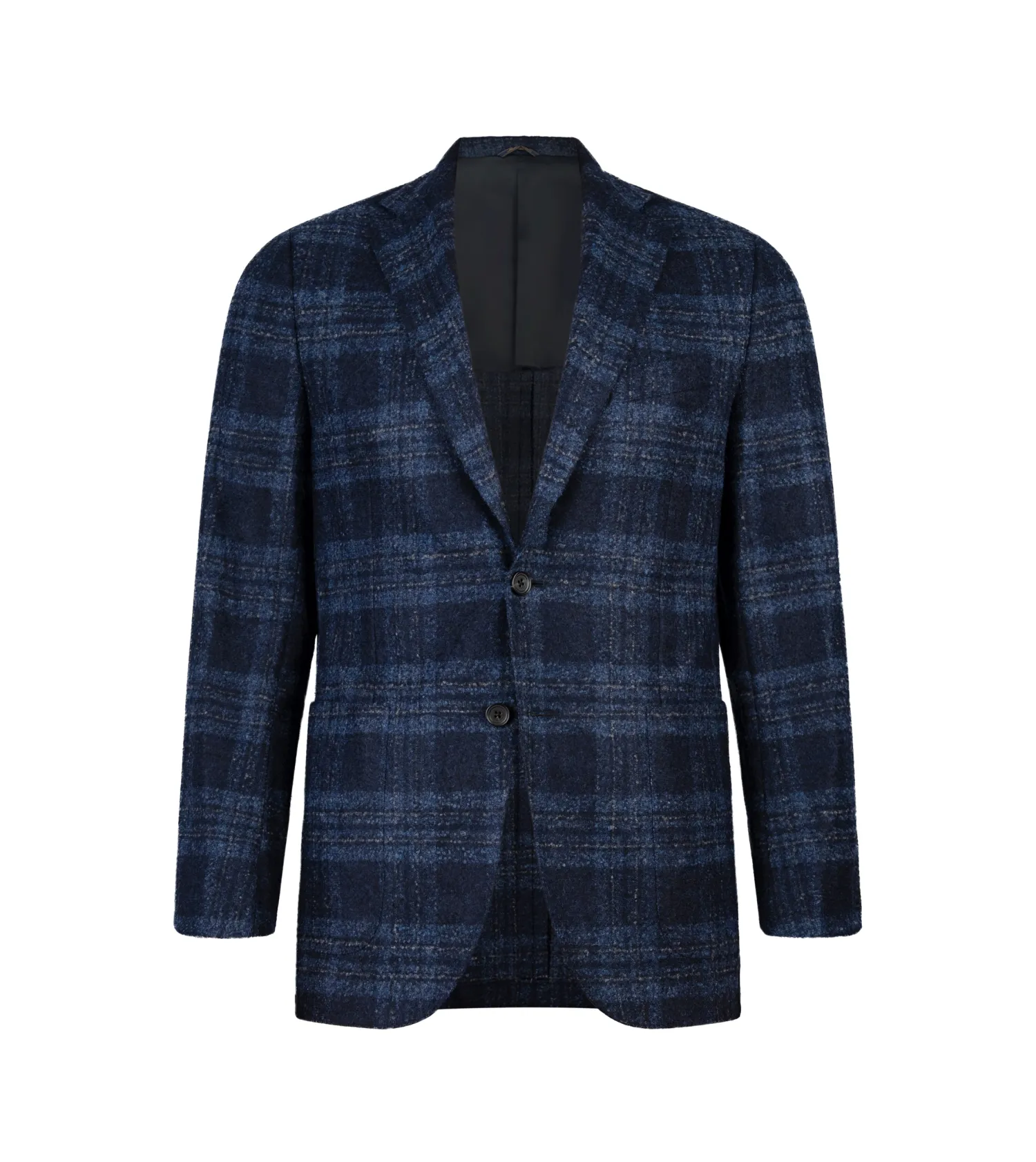 Rare and refined, this Maggiore jacket showcases the exceptional warmth and softness of alpaca fiber blended with fine wool. The distinctive blue ticking pattern creates visual interest while maintaining understated elegance. Our half-lined construction offers breathability and lightweight comfort, making this piece ideal for transitional seasons and layered looks.