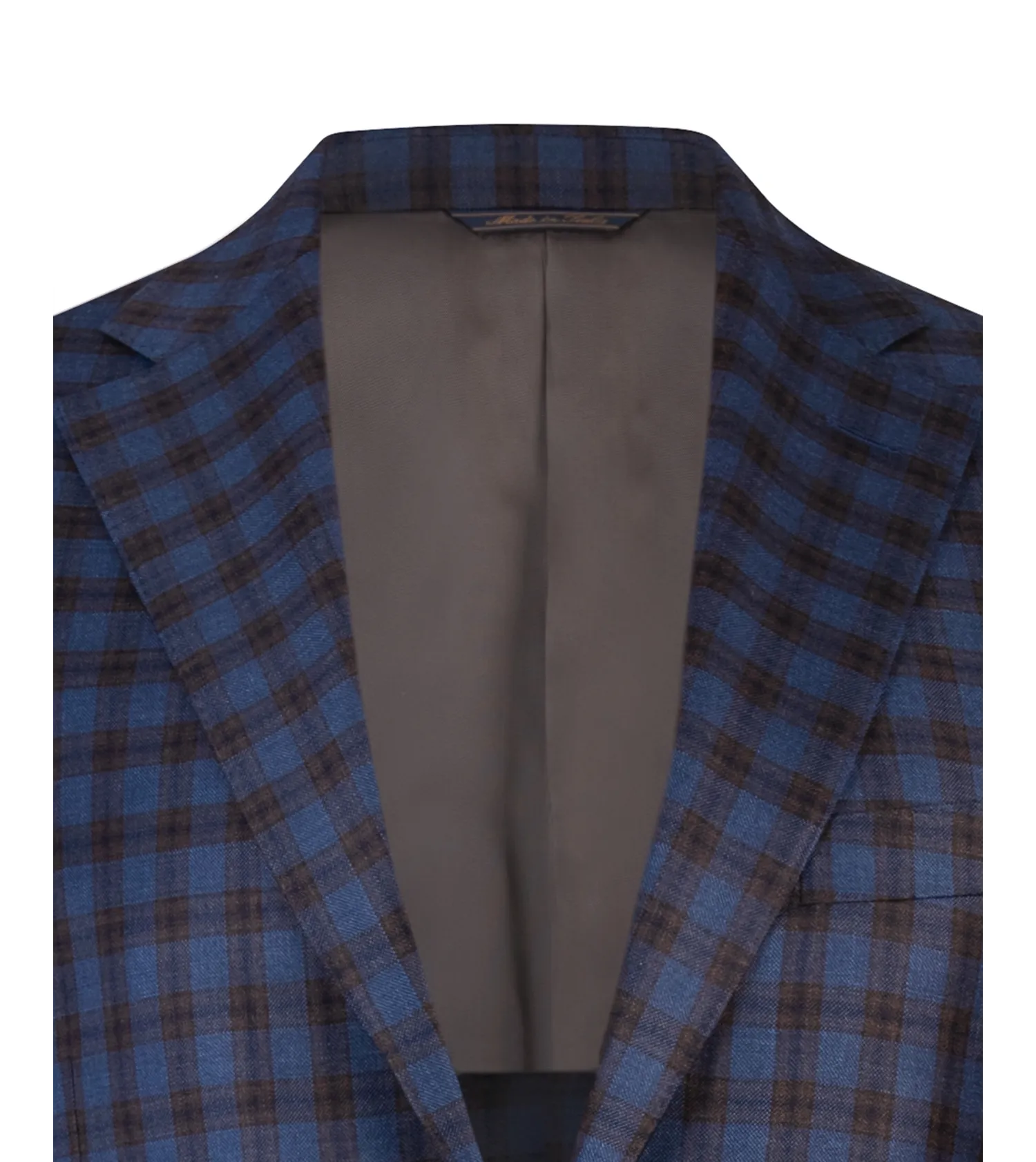 This Maggiore jacket presents a sophisticated box pattern in blue-gray and cinnamon tones - a subtle play of color that adds depth without overwhelming. Crafted from Super 150's wool, the fabric offers exceptional softness and natural drape while maintaining crisp structure. Our half-lined construction provides freedom of movement and breathability, essential for the modern gentleman's active lifestyle.