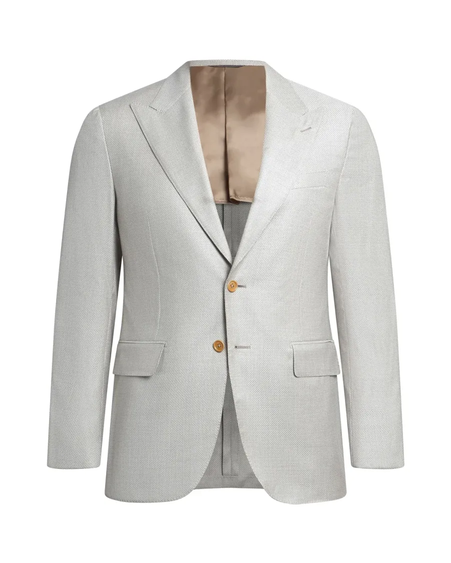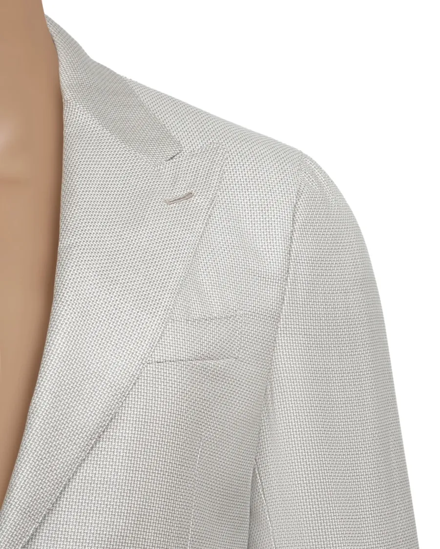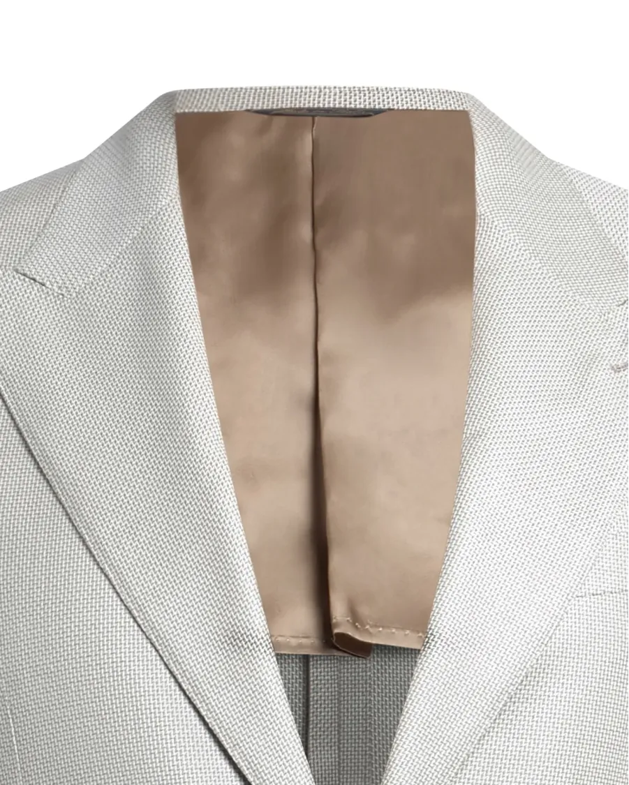 Beige Micro-Check Linen and Cotton Lipari Hand-Sewn Sport Jacket | Italian Summer Blazer